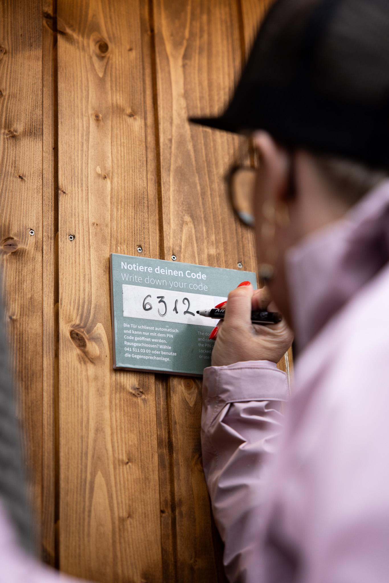 - Achtung: Merke dir den Code gut! Die Saunatür schliesst automatisch und kann nur mit dem Zugangscode geöffnet werden. Der Zugangscode öffnet das Tor nur im gebuchten Zeitraum (auf die Minute genau).