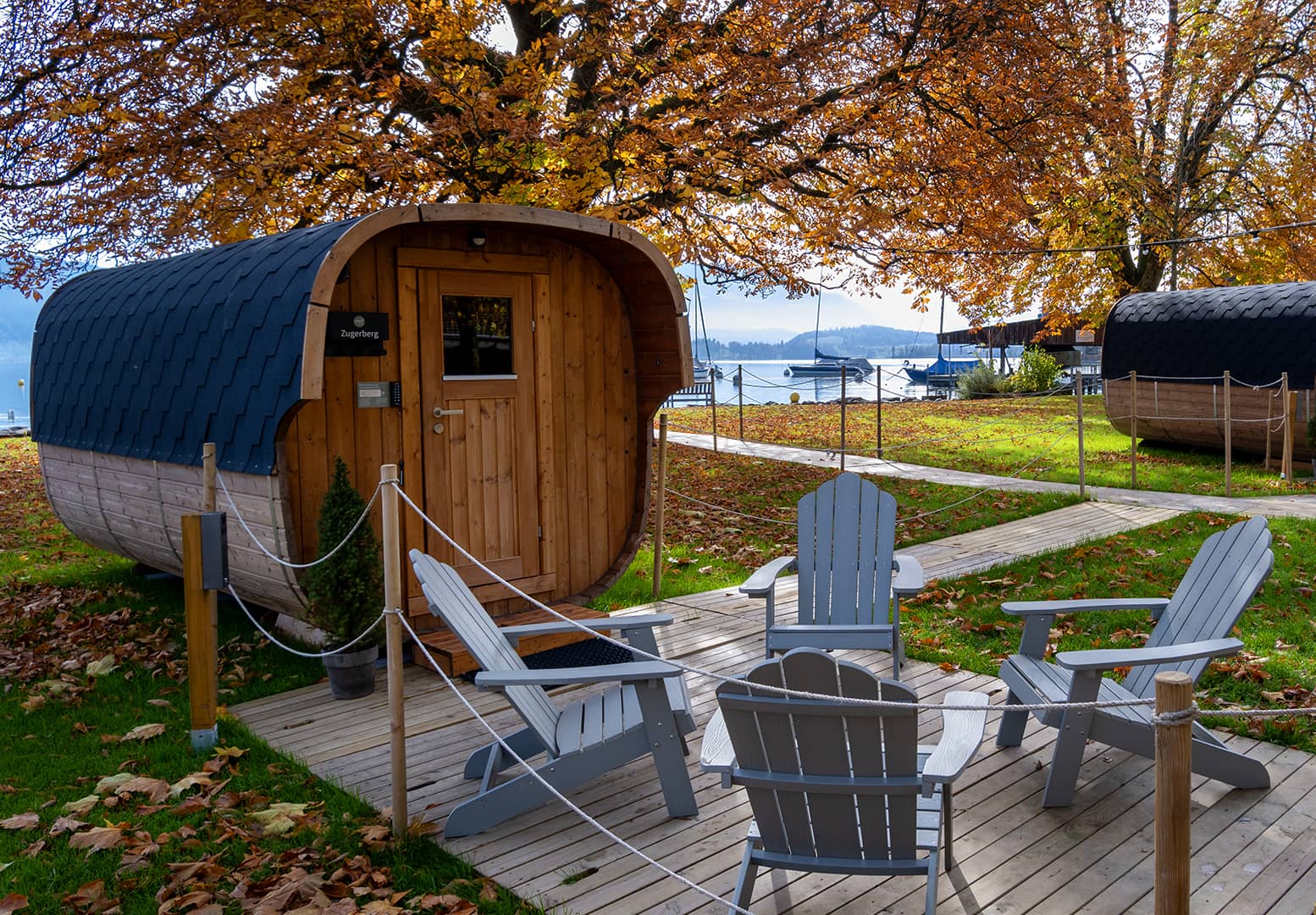 The lido Seeweg is located right on the shores of Lake Zug in Cham. Not far from the village center, the lido is easily accessible by public transport, car or on foot. From the panoramic windows and the lakefront, you'll enjoy a unique view of the Zugerberg, Rigi, and the Central Swiss Alps. The beach resort is exclusively accessible to guests of the Popup Sauna, ensuring a peaceful and private sauna experience.